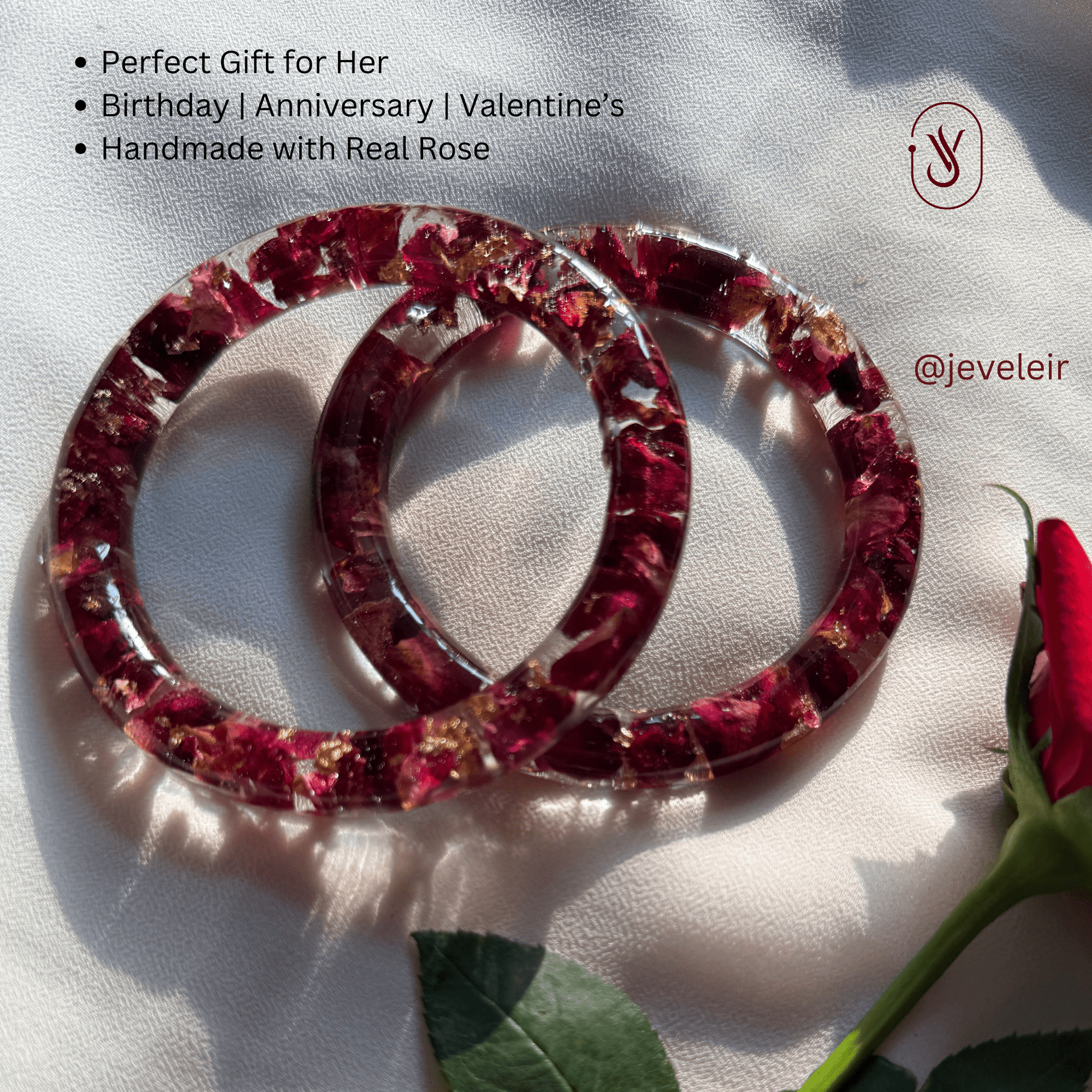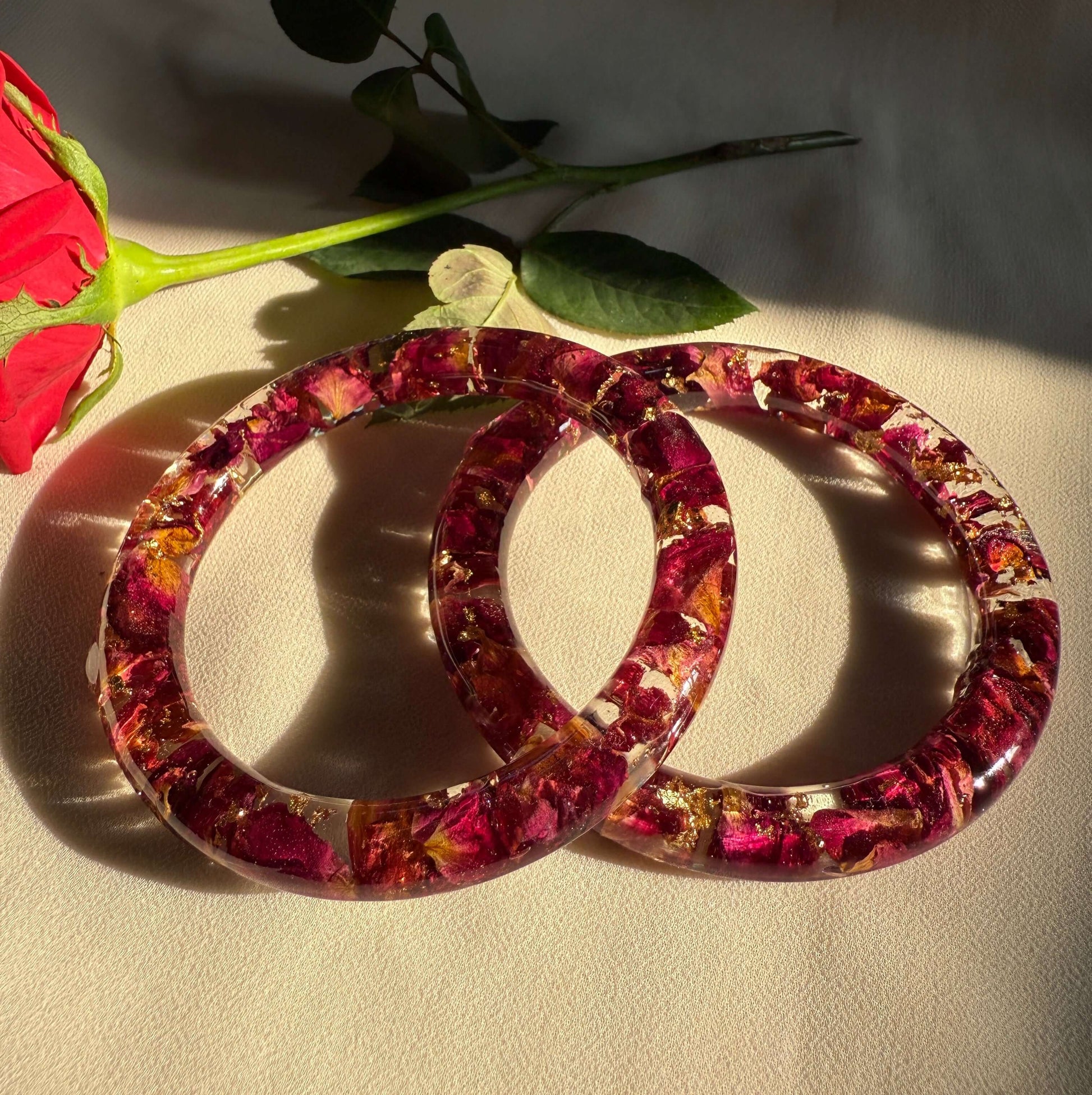 Handmade Real Rose Bangles – Customisable Pair of 2 | Unique Gift for Women