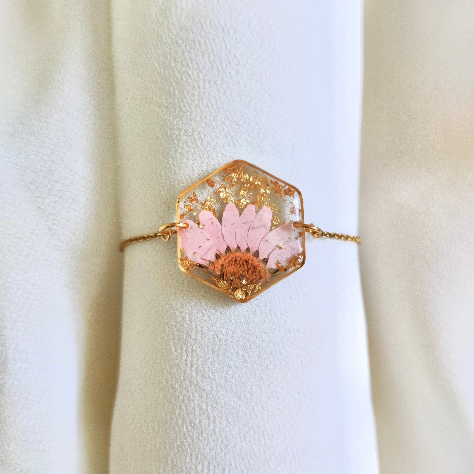 Pink Daisy Anti-Tarnish Bracelet - Customisable