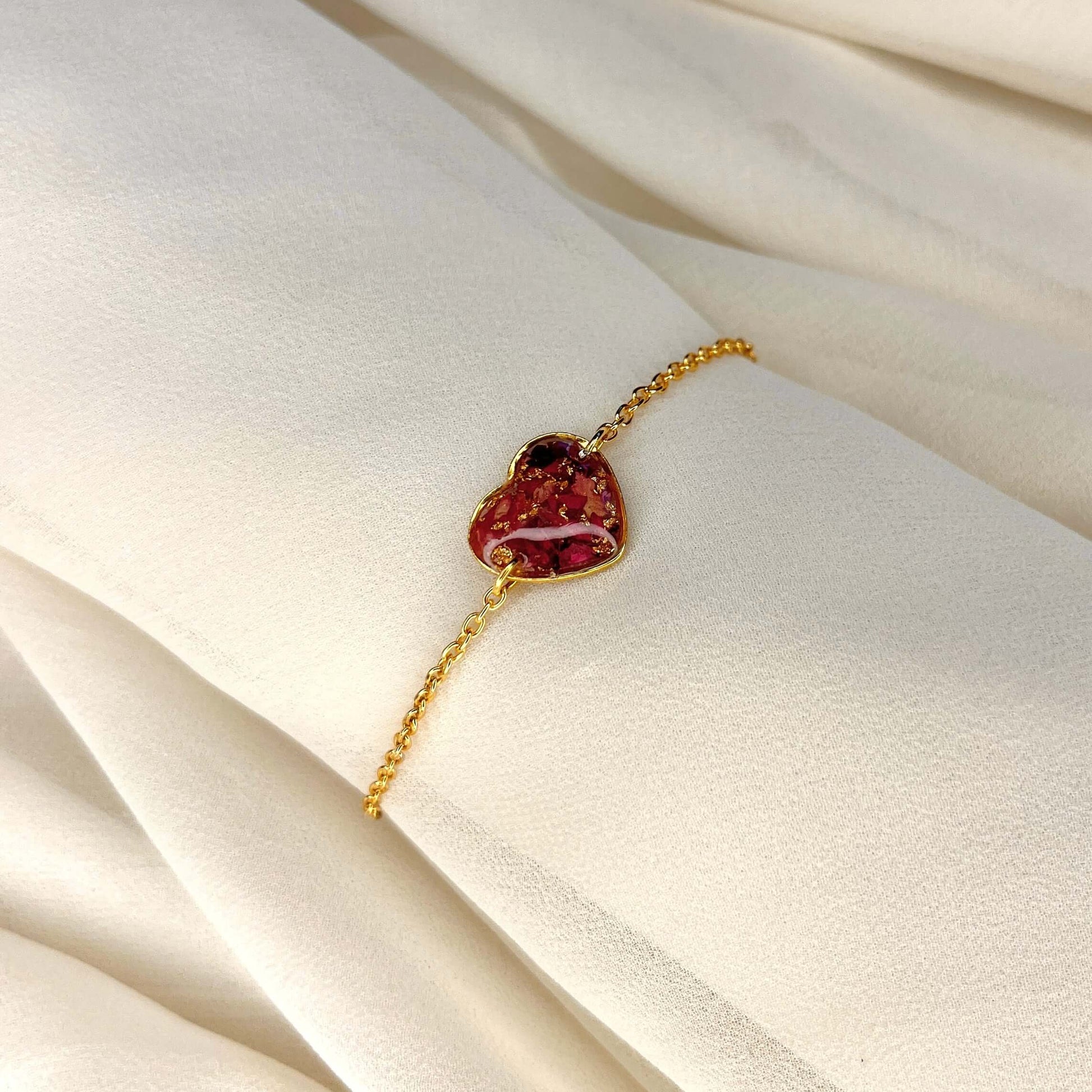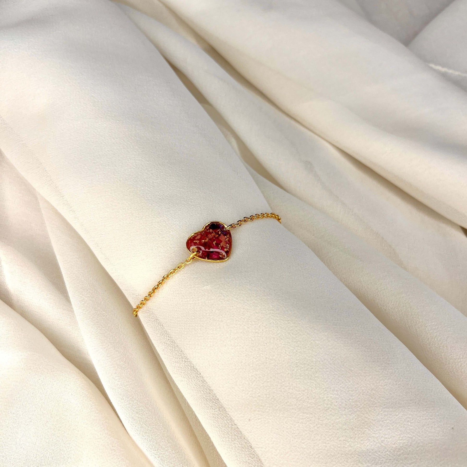 Real Rose Heart Anti-Tarnish Bracelet - Customizable